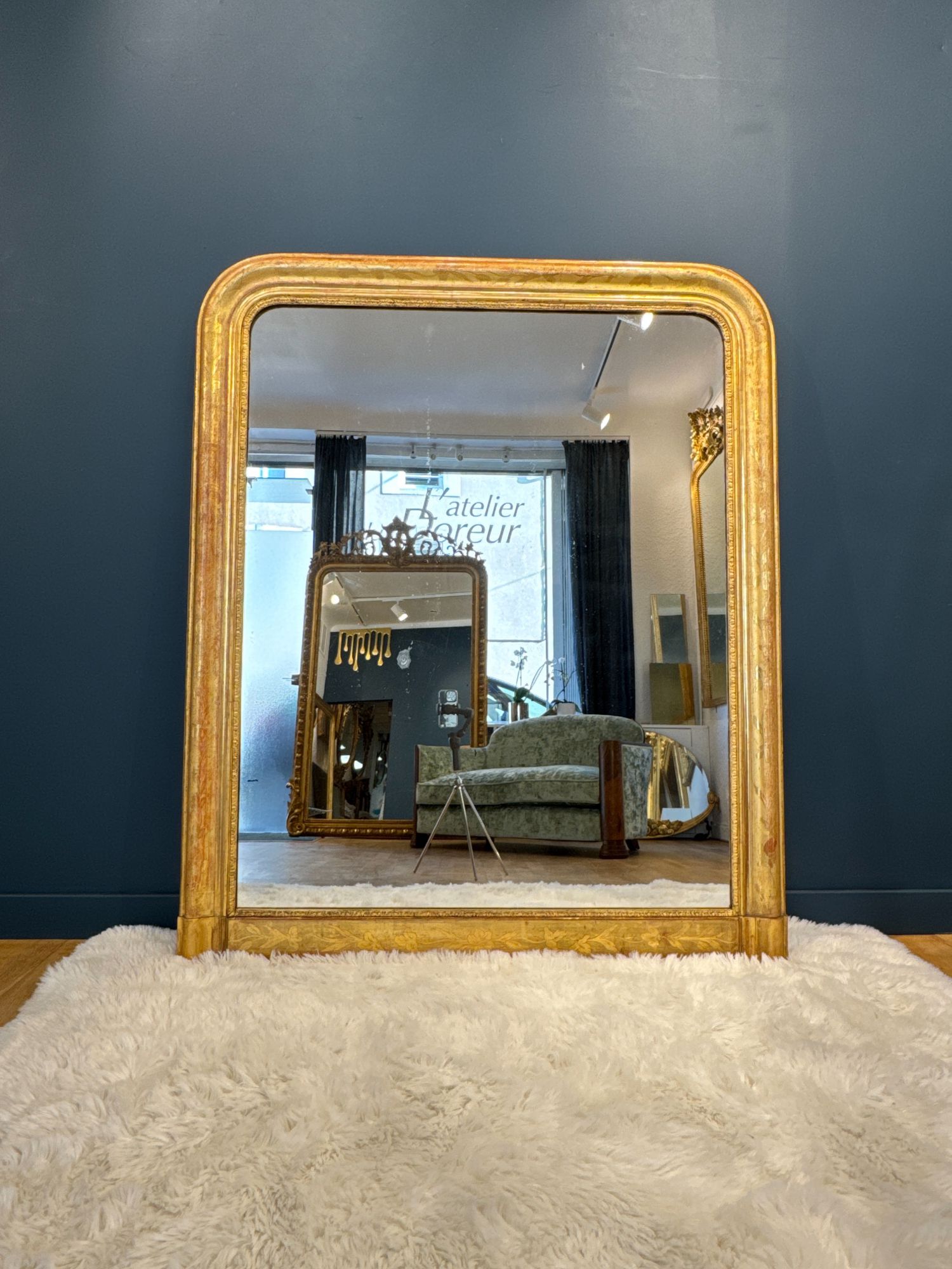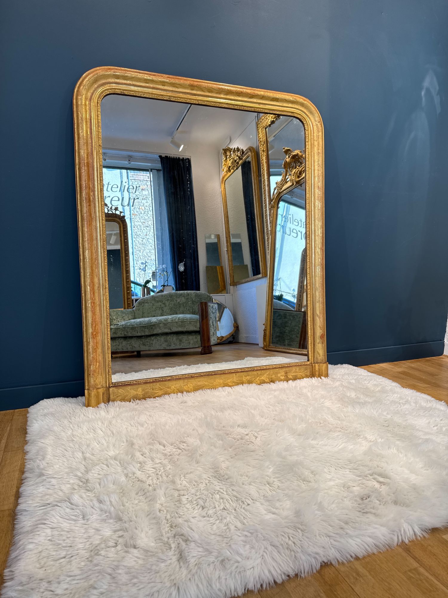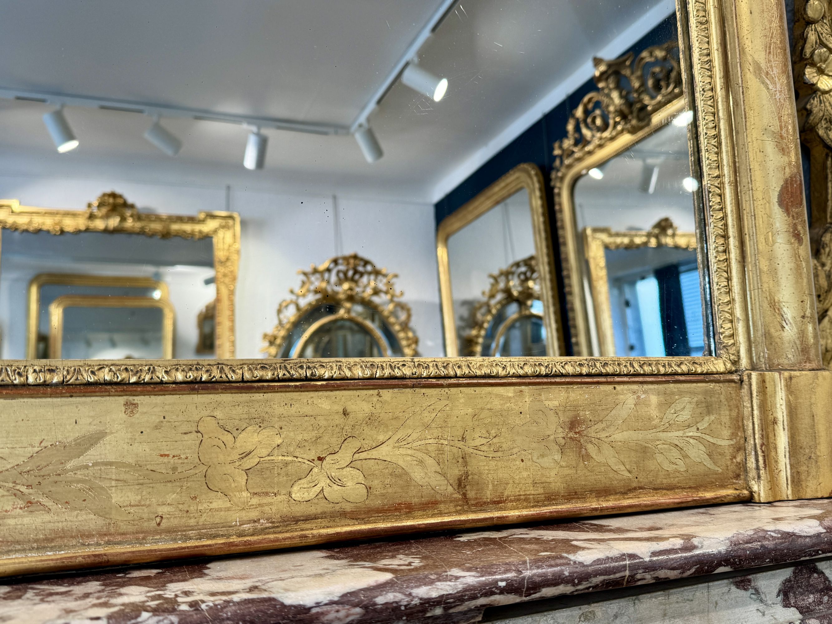 Moulure Louis Philippe rehaussée d'un décor gravé de motifs floraux et feuillagés dans un contraste d'or mat et or brillant .